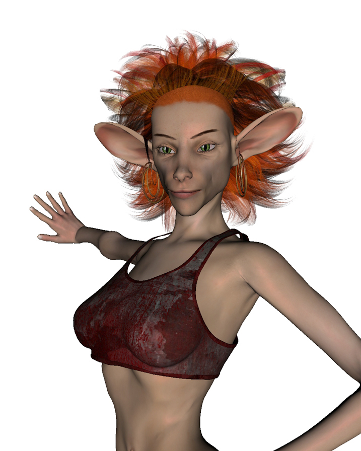 The next time I have $400.00+ just bonking around, begging to be spent, I’m going to commission DIM’s Minimee project to do a custom head of Juniper. She’s an original character that I created in Daz back in my electronic modeling phase. Of all the experimental 3-D renders I did, she captured my heart the most. I was going to release her as a character, meaning a custom morph and textures, with several custom poses, but I never got around to it. She reminds me of Sardonix, only much more feral.