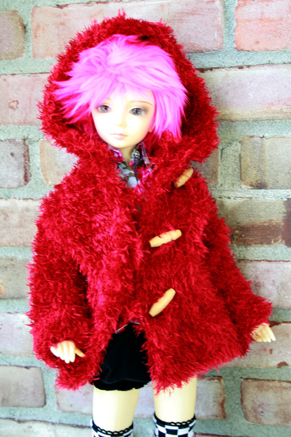 Handmade [not by me] red hooded sweater only. Sorry about the washed out picture. >_> Fits up to 70cms, male and female. Pay s/h.