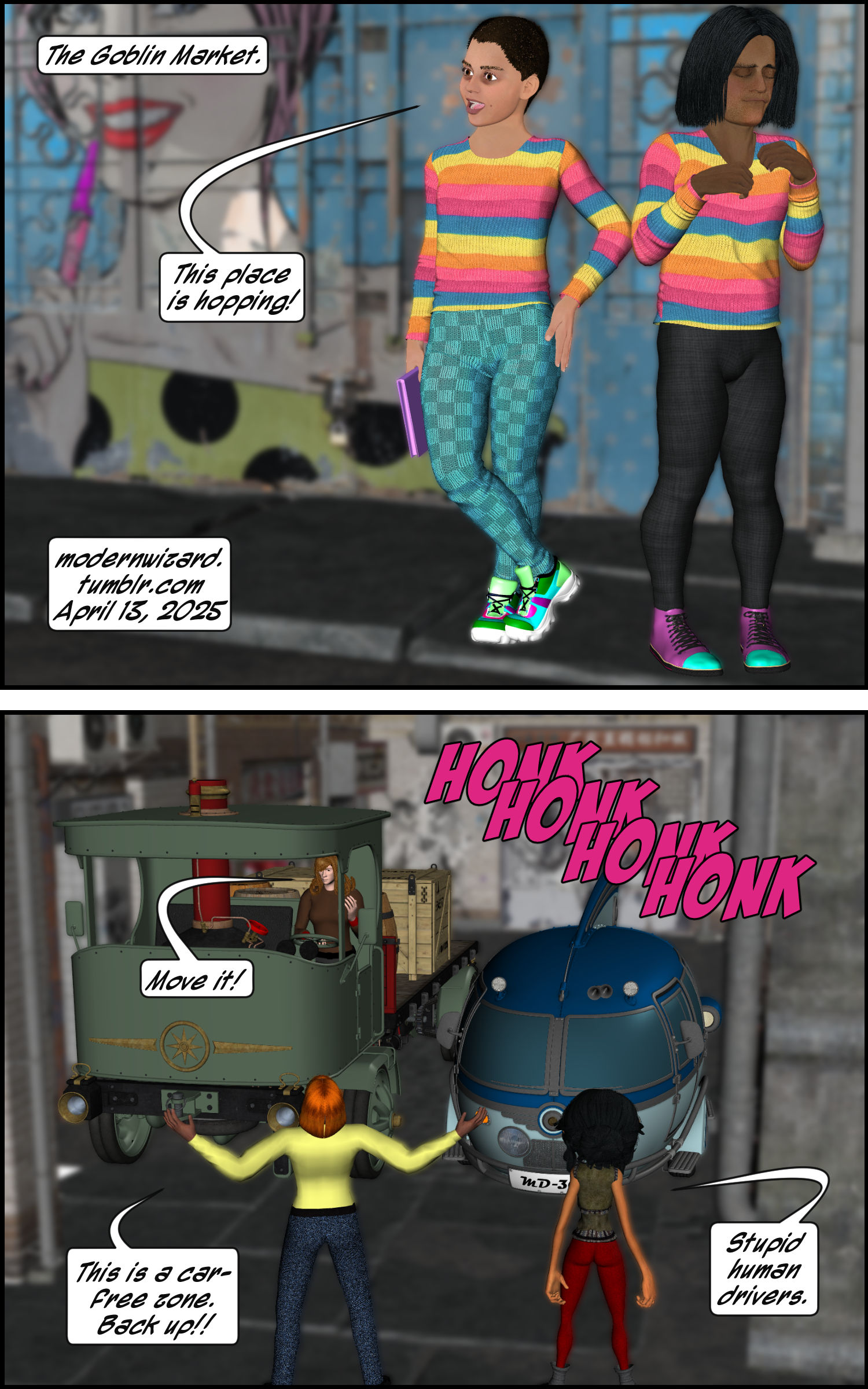 Silencitx and Ethancitx check out the Goblin Market. Silencitx is impressed. Ethancitx is overwhelmed. There’s A LOT going on. Silencitx saves the day.