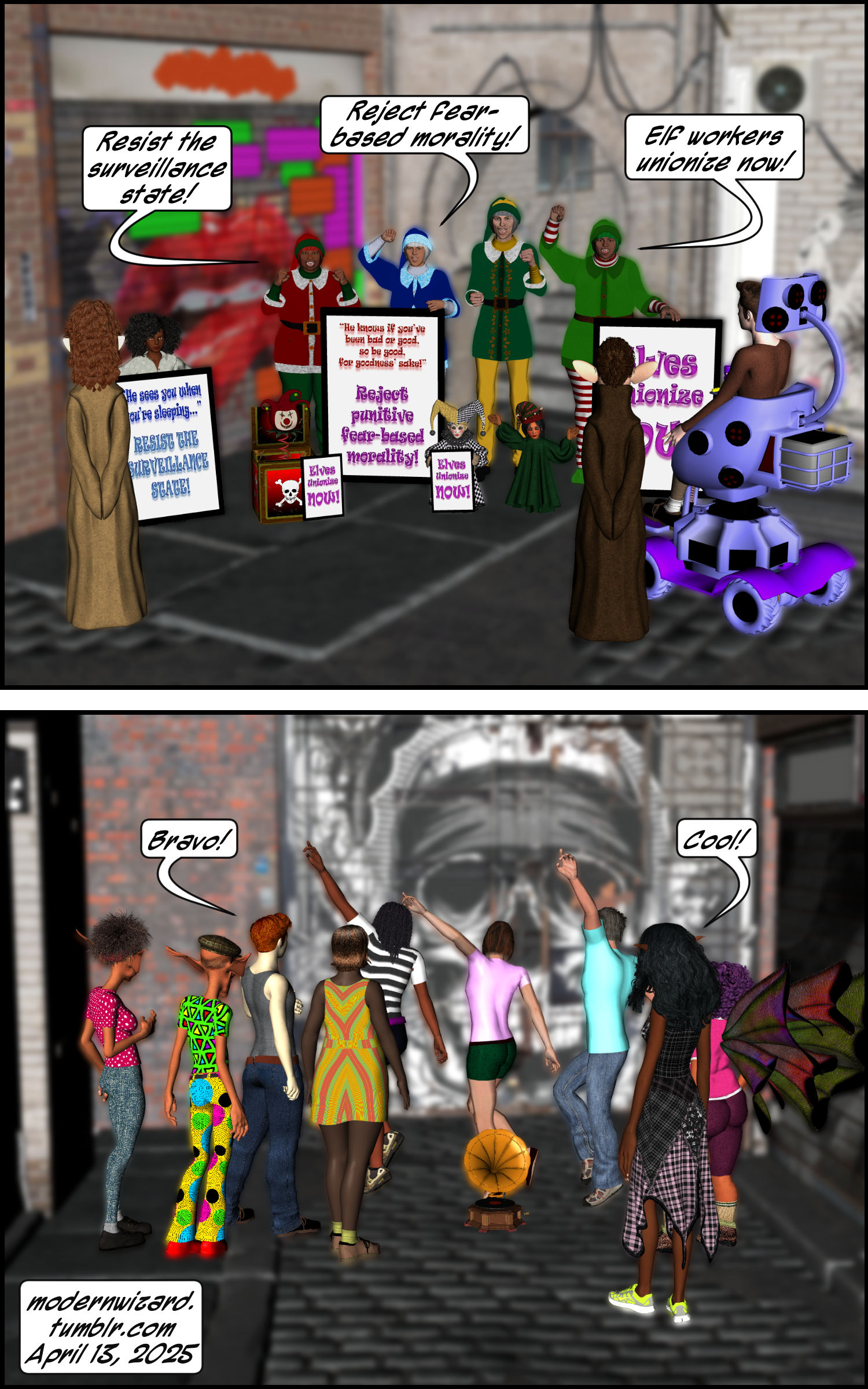 Click on the pictures to enlarge them and read the elf workers’ signs. 😀
