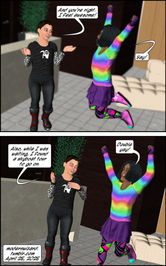 Dorklets Silencitx and Ethancitx in…Balloon Boat Adventure X! Dorklets Silencitx and Ethancitx in…Balloon Boat Adventure X! published on April 27, 2025Read more posts by the author of Dorklets Silencitx and Ethancitx in…Balloon Boat Adventure X!, ModernWizard6 Comments on Dorklets Silencitx and Ethancitx in…Balloon Boat Adventure X! We find out about the book Silencitx has been carrying around with her. We also make time for a gratuitous outfit change!