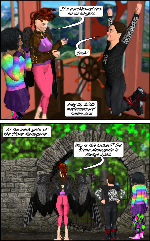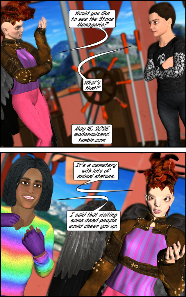 Aefra [the tour guide] takes Silencitx and Ethancitx to a really cool cemetery. The warning on the gate is less cool, however….