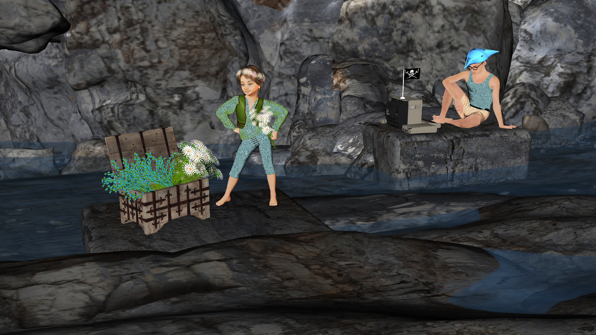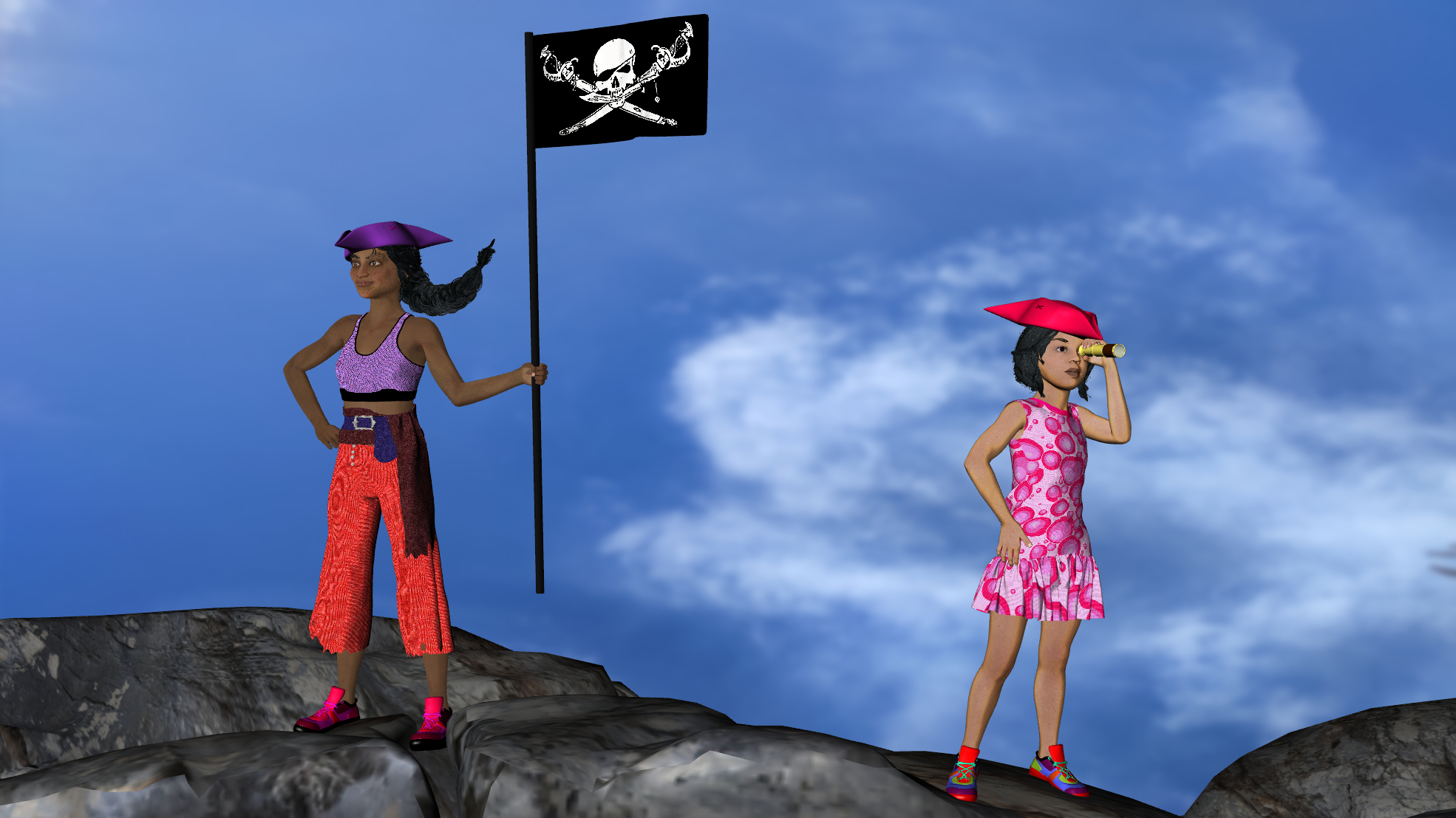 The dorklets have all converted themselves to digital to play pirates in my latest Daz freebie contest entry for “Summer and Piracy.”