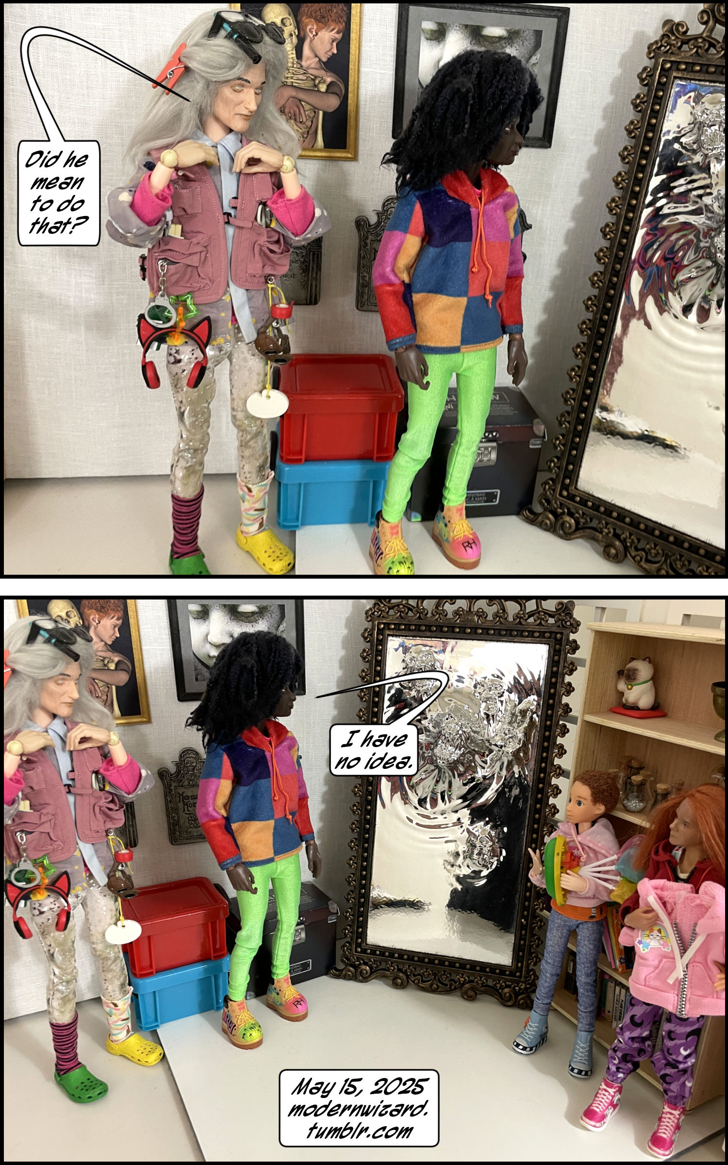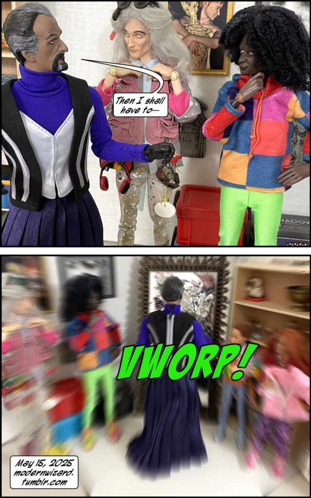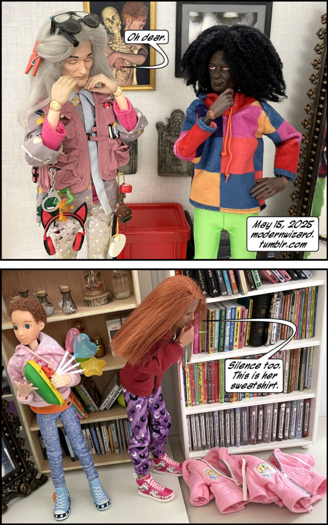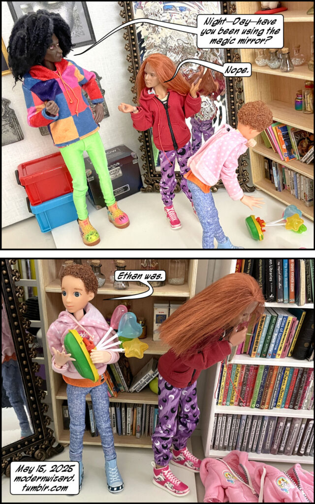 Back at the Elder Witches’ house, the Elder Witches discover the activated magic mirror. Their kids Night and Day do some detective work, and everyone reaches an alarming conclusion. Then the Magister disappears?!