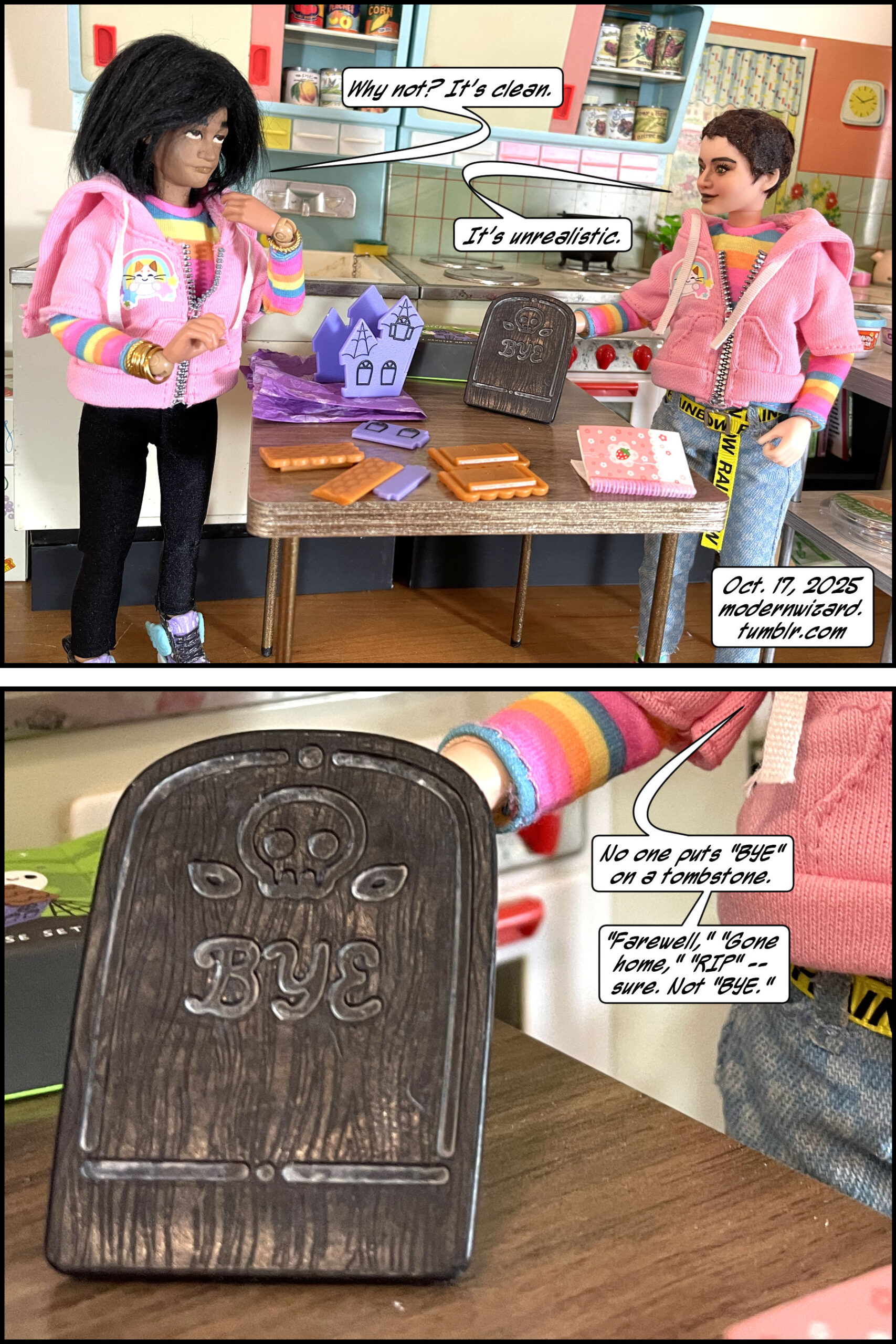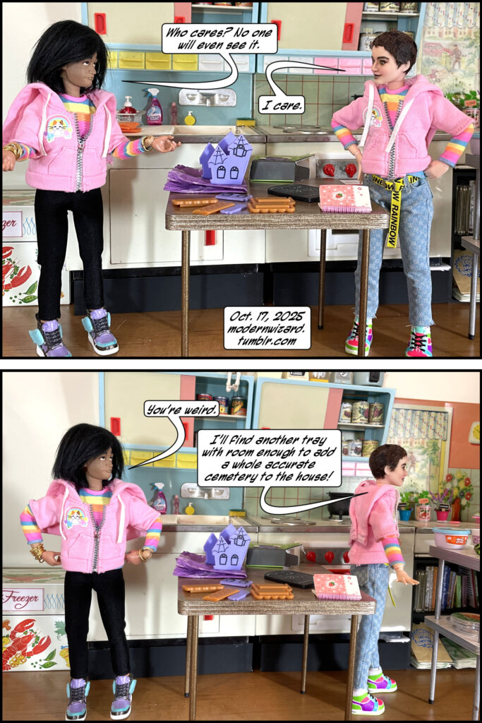 It’s really hard to enjoy Halloween decorations when you know what actual, real-life, historical tombstones look like. This story is brought to you by my personal experience. In fact, I bought this mini haunted house specifically so Silencitx could criticize the included serving platter.