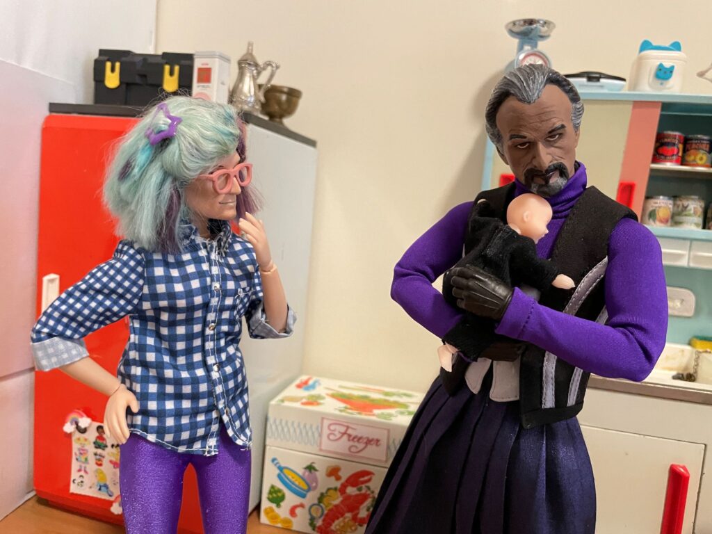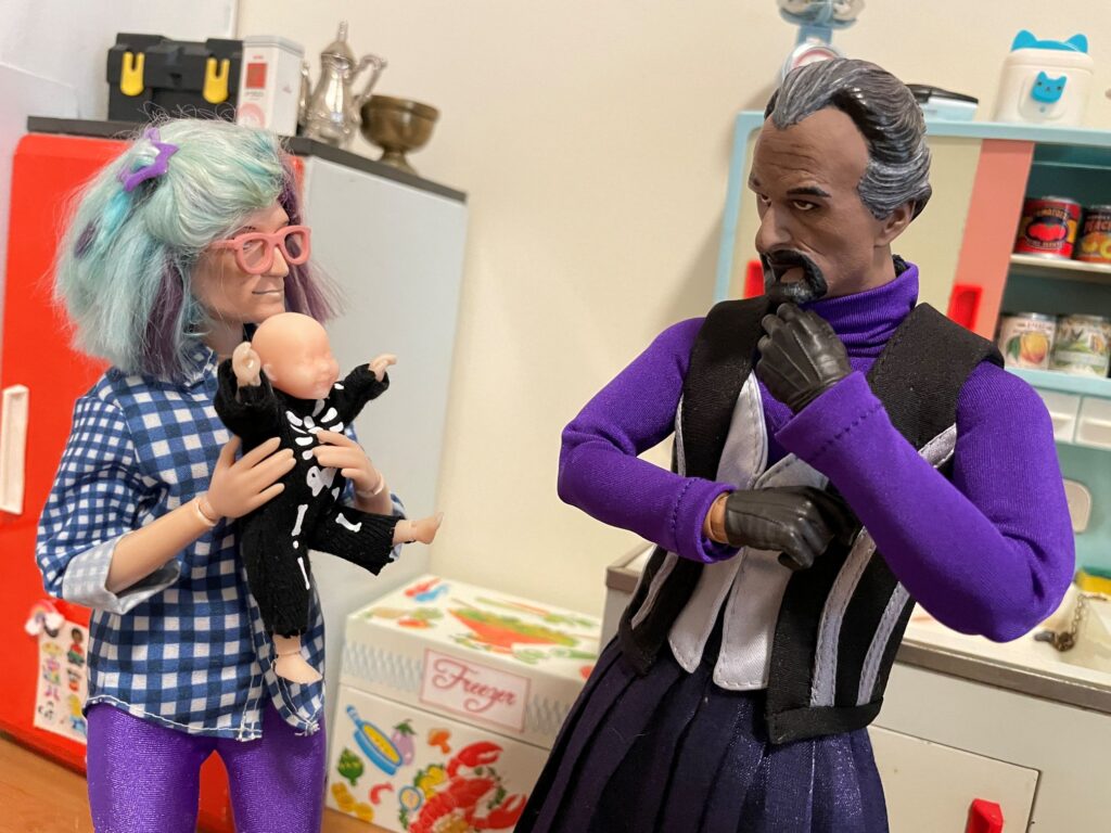 Recently I got a 3″ tall, fully jointed, 3D printed version of Bb Silence, so naturally I had to show her to the Magister…. She’s supposed to represent Bb Silence at six months, for which she might be a little small, but that’s okay.
