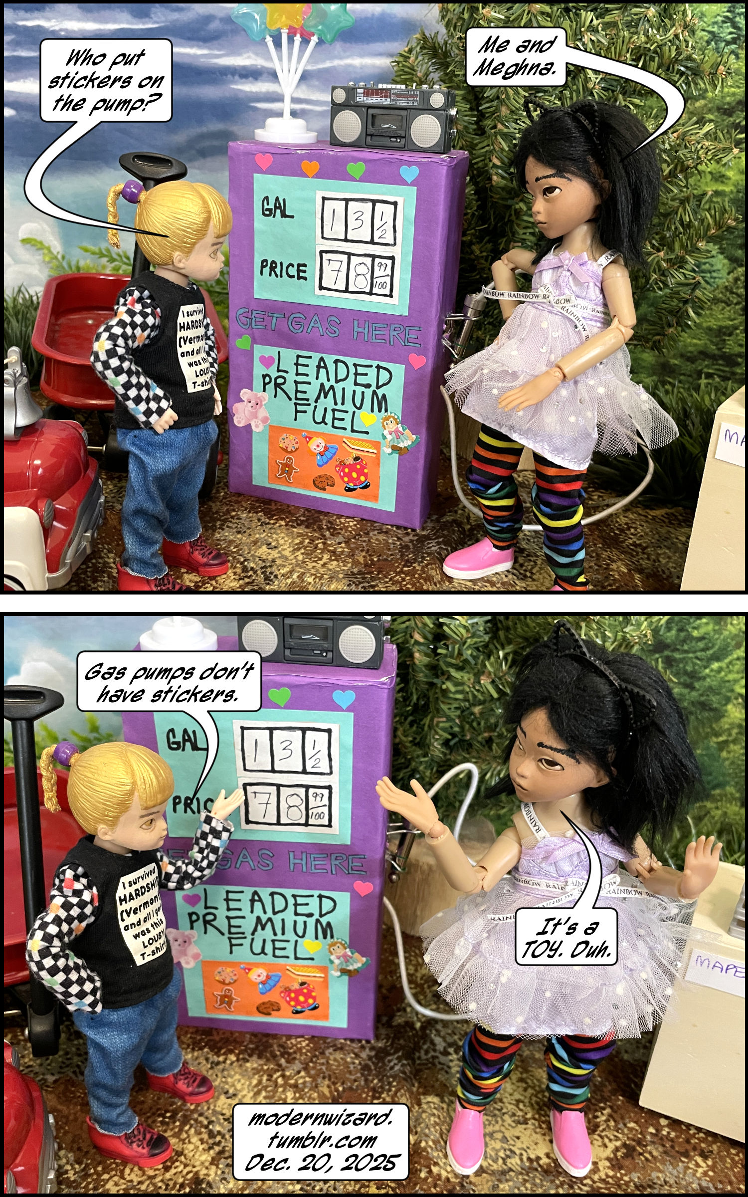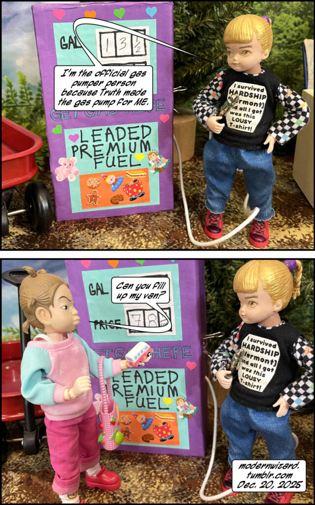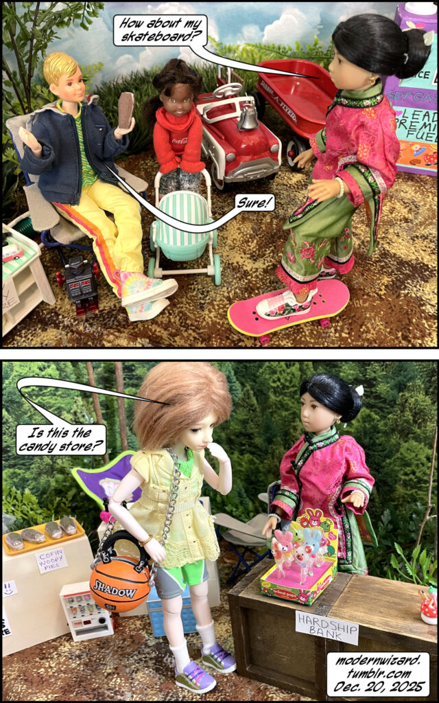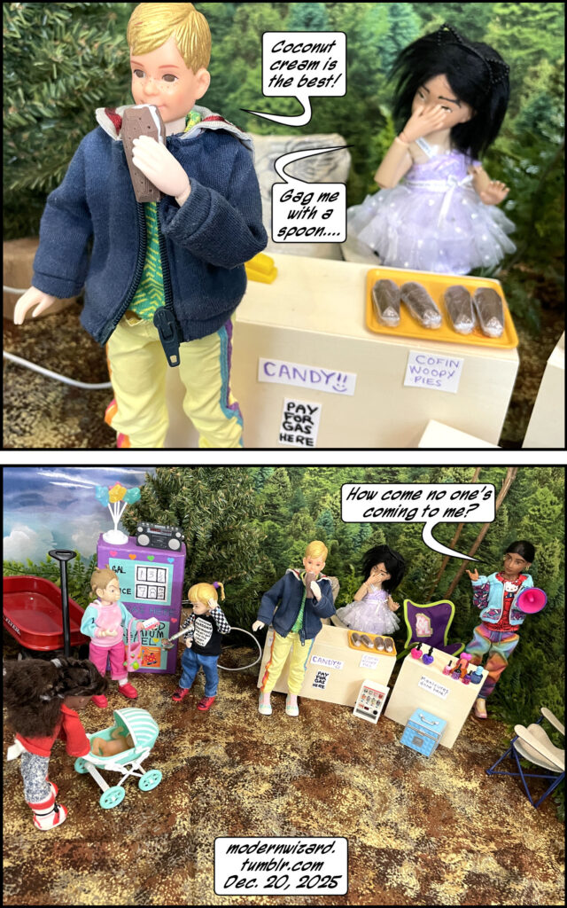 Mini dorklets in…The Gas Station VI! Mini dorklets in…The Gas Station VI! published on December 23, 2025Read more posts by the author of Mini dorklets in…The Gas Station VI!, ModernWizard2 Comments on Mini dorklets in…The Gas Station VI! More kidsies play gas station [and nail salon and day care and bank]… Notice that the bank has the most important stuff [as far as the kids are concerned]: free lollipops and free pens.