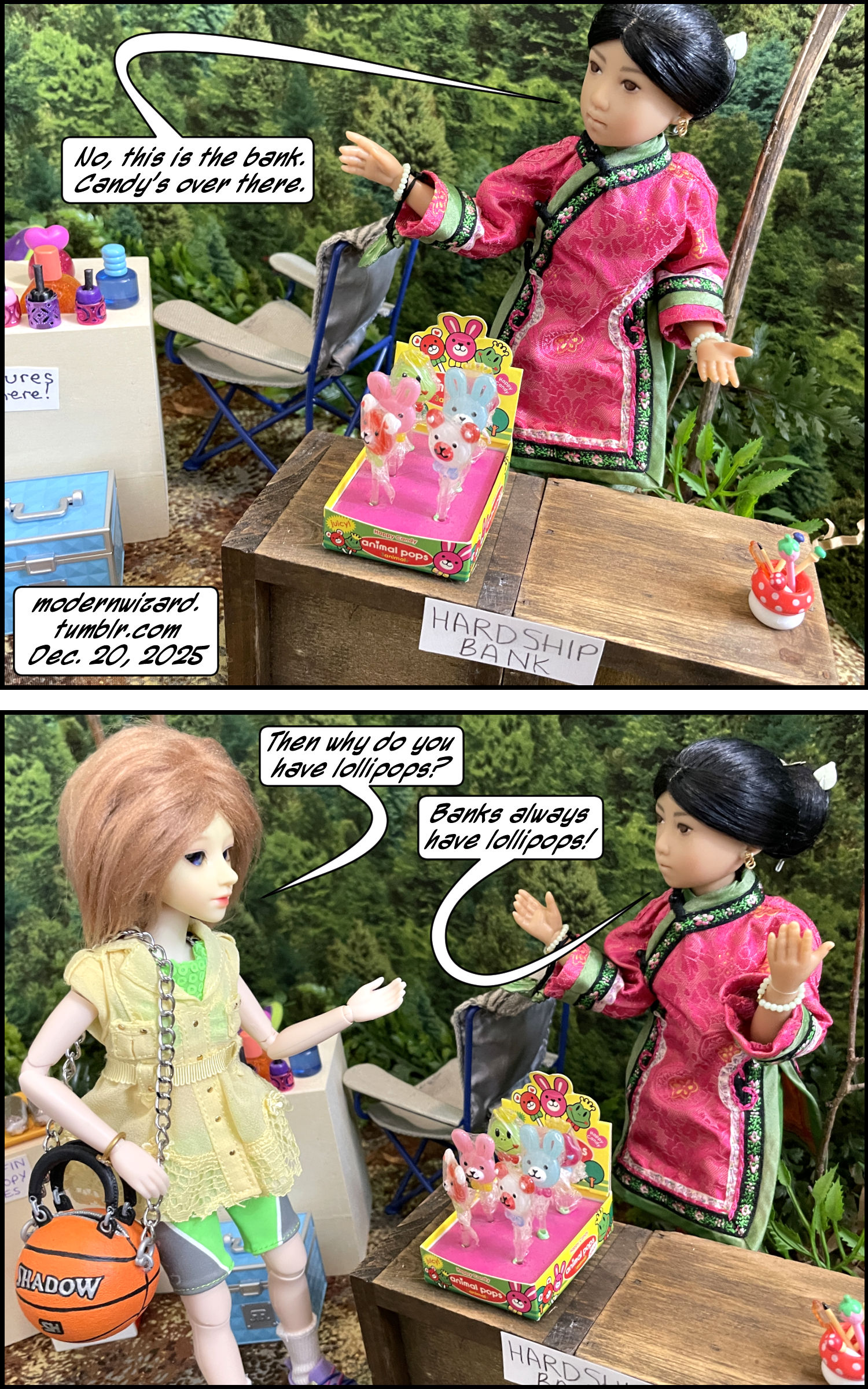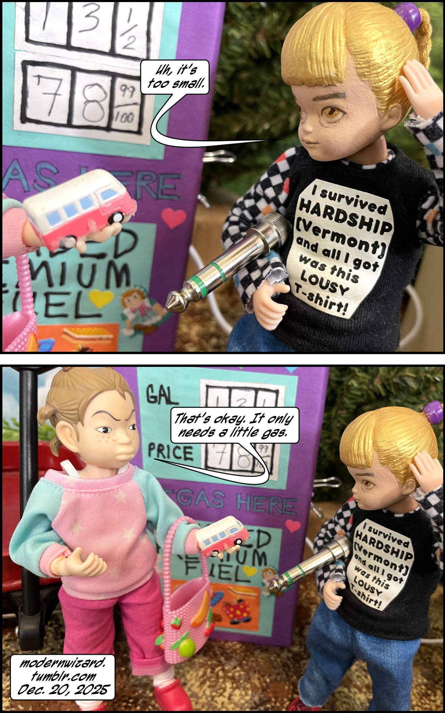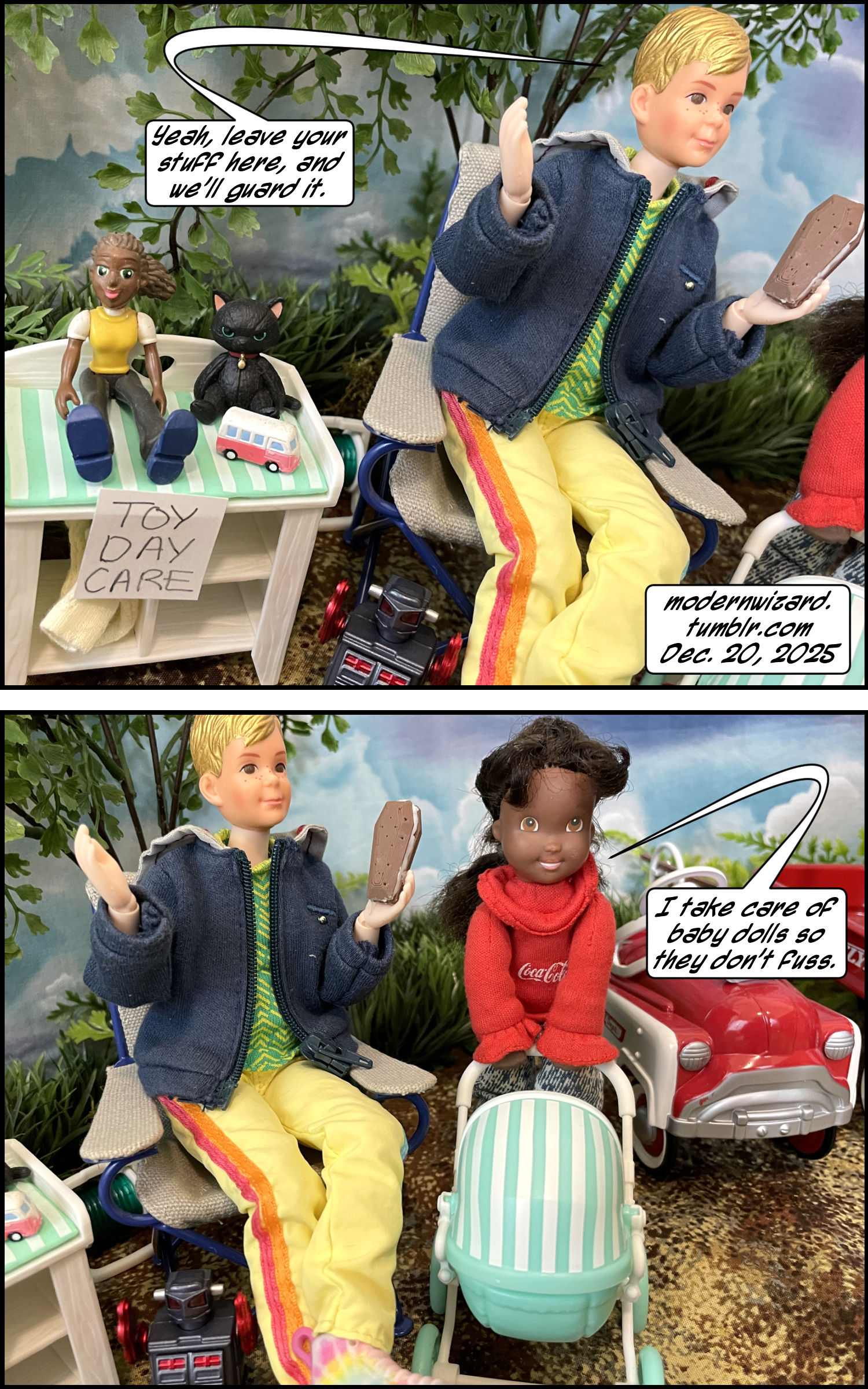 Mini dorklets in…The Gas Station VI! Mini dorklets in…The Gas Station VI! published on December 23, 2025Read more posts by the author of Mini dorklets in…The Gas Station VI!, ModernWizard2 Comments on Mini dorklets in…The Gas Station VI! More kidsies play gas station [and nail salon and day care and bank]… Notice that the bank has the most important stuff [as far as the kids are concerned]: free lollipops and free pens.